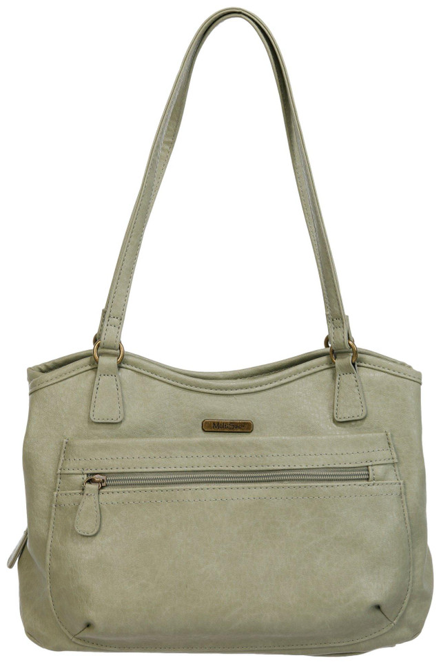 This spacious shopper allows plenty of space and storage for your daily essentials. Its top zip center closure keeps your items safe and secure while also allowing for easy access on the go with the 2 side snap compartments. The lined interiors have a zip-around middle compartment, and 2 smaller side snap compartments, containing 1 zip pocket and 2 slip pockets. Measures approximately 12 in x 4 in x 9 in. Handle has approximate 10.5 inch drop.
