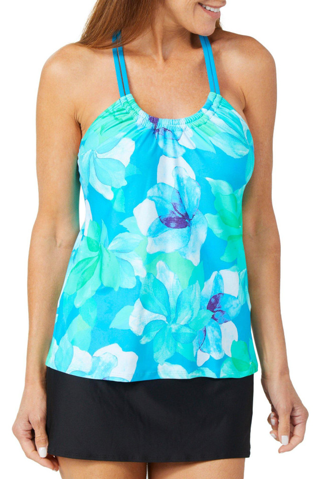 Make waves in the Women's Tavarua Tankini Top, featuring a vibrant floral print and internal shelf bra for support. With extra stretch, UPF 50 protection, and moisture-wicking fabric, it is designed for all-day comfort whether you are poolside or beach-bound. Fabrication is 89% nylon, 11% spandex