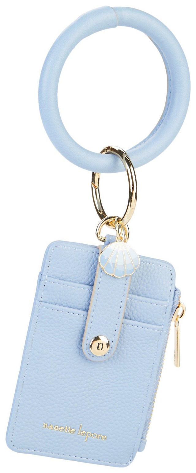 Stay stylish and organized with the Nanette Lepore Candi Card Case Shell Charm Bracelet Wallet, a chic and multifunctional accessory designed for convenience and flair. Featuring a unique bracelet design and compact card case, it effortlessly combines fashion with practicality. Features removeable key ring and card case. Cardholder has 2 card slots with snap closure, 1 ID window and 1 zippered pocket. Measures: 4.75 in H x 3.25 in W x .25 in D.