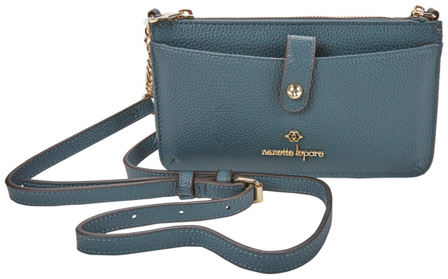 Introducing the Mickey Crossbody Bag, a perfect blend of style and practicality. This bag boasts a solid pebble leather exterior complemented by elegant gold-tone hardware. It features a top zip compartment for secure storage, an adjustable crossbody strap for versatile wear, and a convenient front snap button pocket. Measuring 8 inches by 1 inch by 5 inches, this compact bag is ideal for carrying your essentials with ease and sophistication.