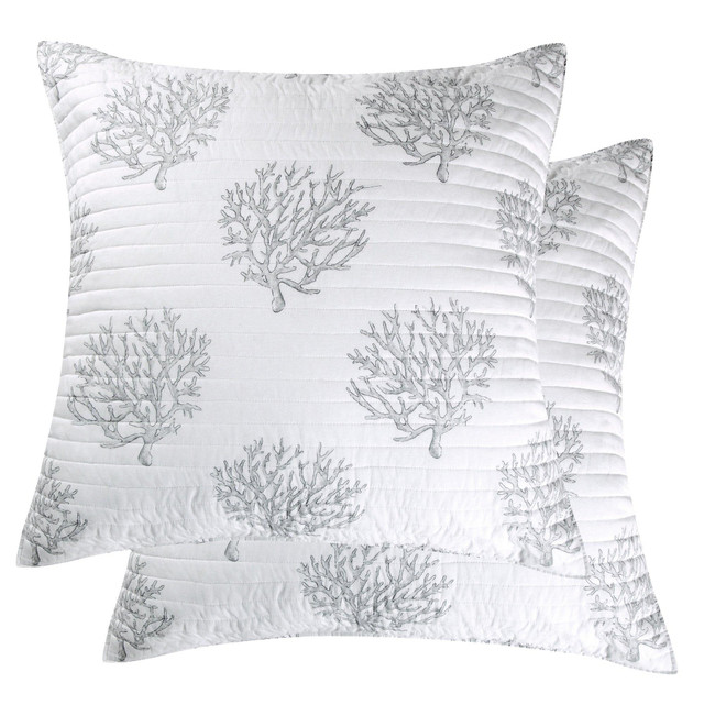 The Nantucket Quilted Euro Sham 26x26in. set of 2 by Levtex Home is inspired by a relaxing tropical vacation. Offered in blue, this design will immediately transform your bedroom. This shams feature intricate repeating coral design in varying shades of blue. The Euro Shams (26x26in.) are quilted with a cotton rich filler and is machine washable. Pillow inners are not included. Enjoy for years to come!