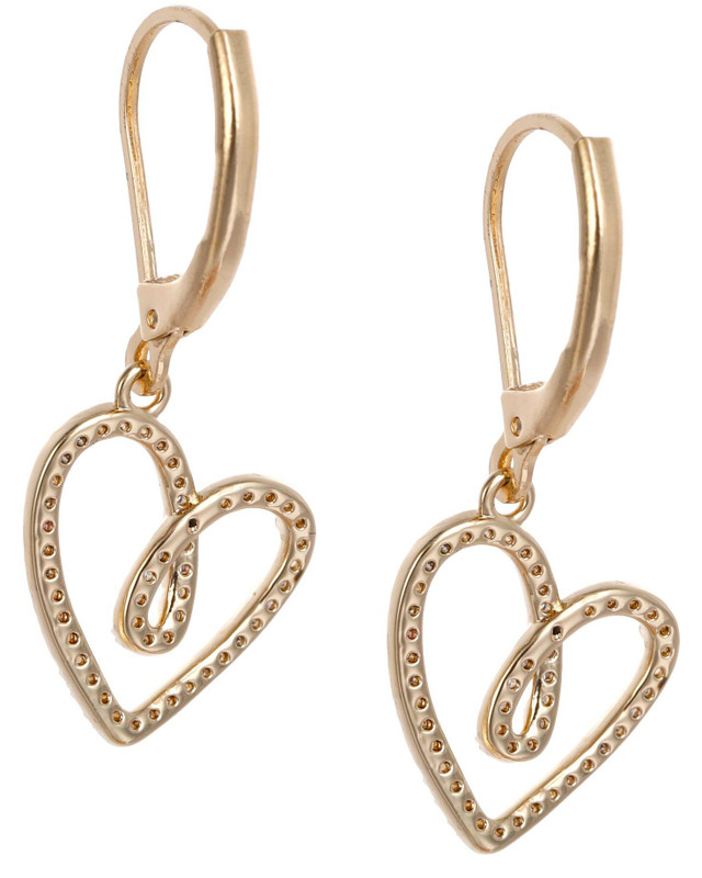 Add a romantic sparkle to your style with these 1.25 inch gold tone heart earrings, accented with cubic zirconia for a touch of shimmer. The lever back closure ensures a secure, comfortable fit, making them perfect for both everyday wear and special occasions. A sweet and elegant accessory with timeless charm.