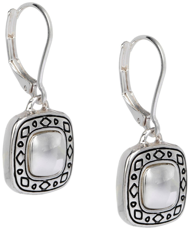 Add refined rustic charm with the 1.25 in Drop Lever Back Silver Tone Dangle Earrings. Featuring a shiny rectangular center framed by a detailed rustic pattern along the border, they offer a unique blend of elegance and texture. Perfect for complementing both casual and dressy looks.