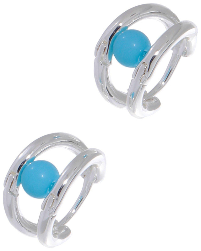 These sleek silver plated hoops feature a vibrant turquoise bead suspended in the center for a pop of color. Their small, modern design makes them perfect for everyday wear, adding a subtle coastal touch to any outfit.