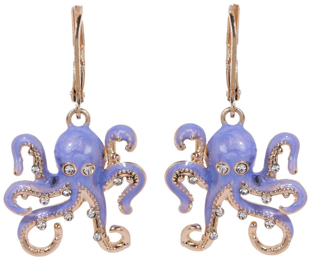 Dive into ocean-inspired charm with these adorable purple octopus earrings. Featuring sparkling crystal accents and intricate detailing, these drop earrings bring a touch of whimsy and seaside fun to your look. Perfect for beach lovers or playful accessory enthusiasts!