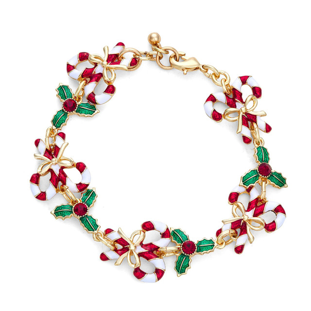 Add a sweet seasonal touch with this Holiday Candy Cane Flex Bracelet. Featuring a gold tone finish and a secure lobster claw closure, its designed with festive charm and flexible comfort. Perfect for holiday outfits or gifting.