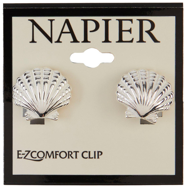 Add a touch of seaside charm with these silver-tone shell clip-on earrings by Napier. Featuring the E-Z Comfort Clip for a secure, pinch-free fit, theyre perfect for elegant, non-pierced style with a coastal twist.