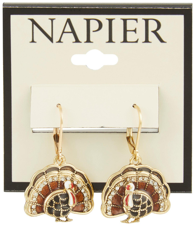 Napier Thanksgiving Gold Tone Turkey Drop Earrings