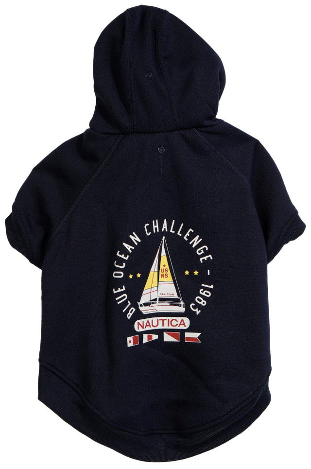 This Dog Hoodie Jacket featuring Blue Ocean Challenge 1983 on the back brings vintage nautical vibes to your pups wardrobe. Made from soft, cozy fabric with a snug hood and easy-fit design, its perfect for breezy walks or chilly beach days. Fabrication is 100% Polyester.