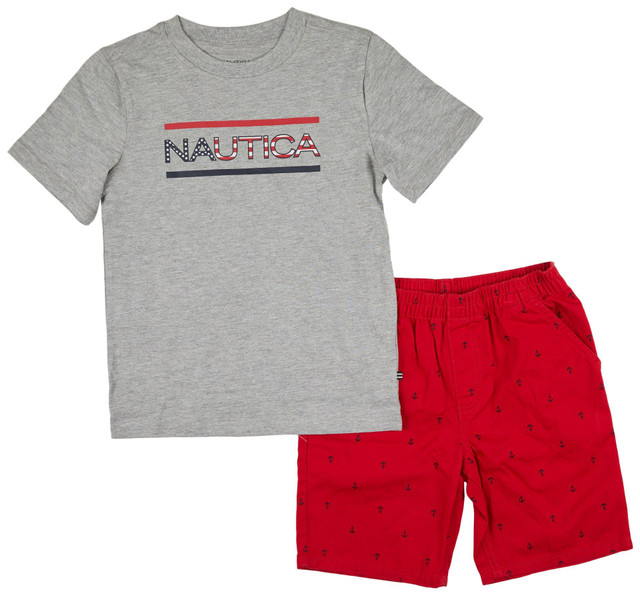 Nautica Little Boys 2 Pc Americana Anchor Shorts Set
