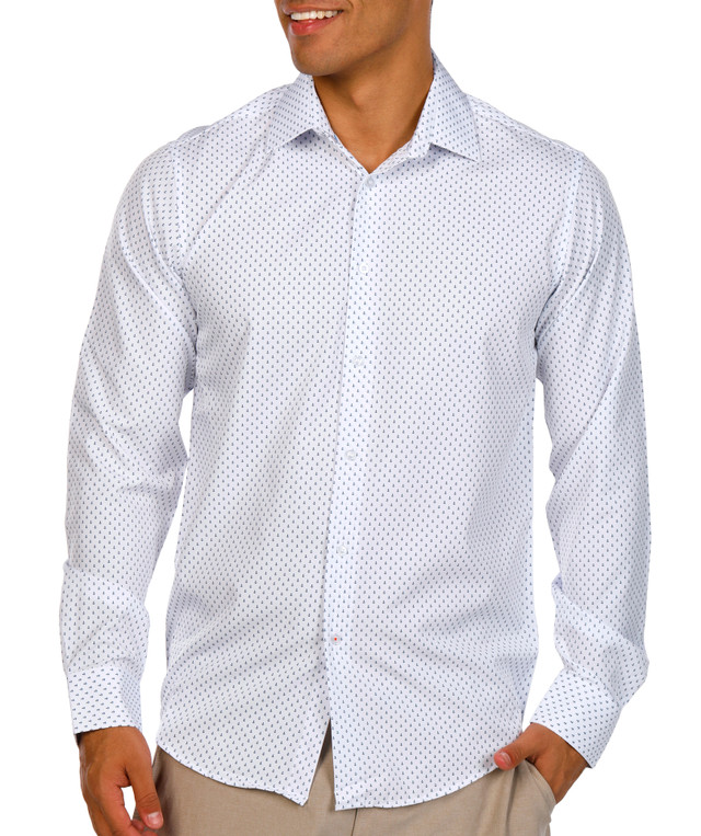 Step up your style game with this long sleeve buttoned shirt, featuring a classic solid color and a sleek slim fit. Perfect for both casual and formal occasions, this shirt offers a modern twist on a timeless pattern. Crafted from high-quality materials, it ensures comfort and durability while maintaining a sharp, tailored look. Fabrication is 97% polyester and 3% spandex.