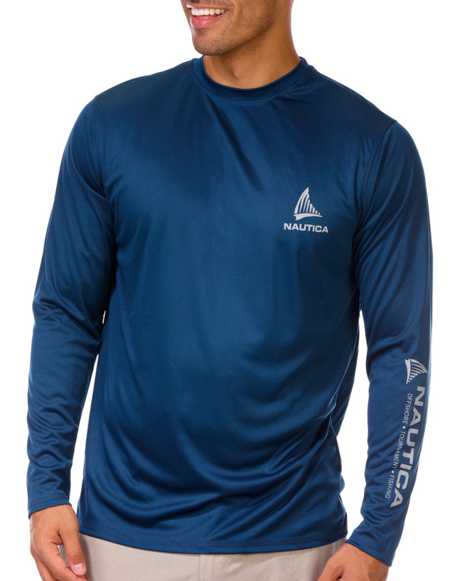 This Men's Long Sleeve Vented Performance Shirt combines style and function with a crew neckline and subtle brand script on the chest. Engineered with antimicrobial fabric, stain resistance, ventillation, and UPF 50+ protection, it is built for comfort and durability in any setting.
