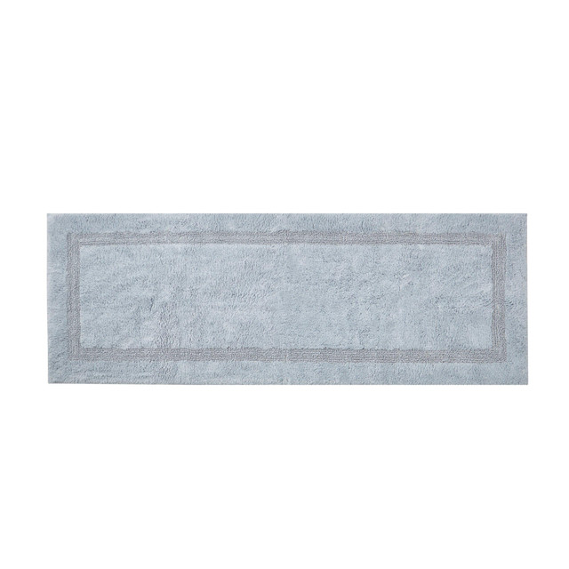 Looking for a trusted brand for décor in your bathroom? Look no further for our Nautica Peniston Bath Rug, available in a runner size measuring 22 in. x 60 in. This 100% cotton tufted rug is excellent for everyday bathroom use as it is constructed for maximum absorbency. With anti-skid backing, this rug is sure not to move out of place. Machine washable for easy care.
