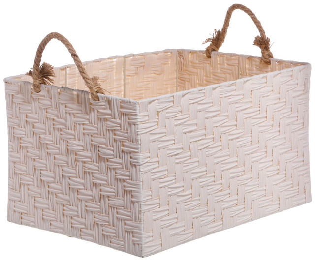 Timeless craftsmanship meets everyday functionality in the Rectangular Herringbone Weave Storage Basket, a perfect blend of structure and style. Designed with a classic herringbone weave, its textured pattern adds a refined touch, making storage feel like an intentional part of your décor rather than mere necessity. Measures 20 in x 12 in x 16 in.