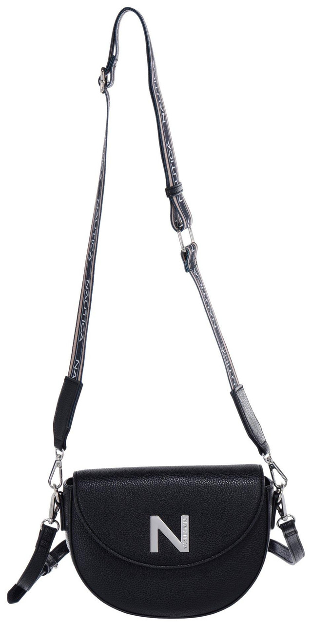 Introducing the Round Flap Pebble Leather Crossbody Bag, designed with elegance and functionality. This stylish bag features a pebble leather exterior and silver-tone hardware. The snap button front flap closure ensures secure storage, while the lined interior includes an inner zip pocket. An outer slip pocket provides easy access to essentials. With two adjustable and removable crossbody straps and an embossed logo script on the bottom, this bag measures 8 inches by 6 inches.