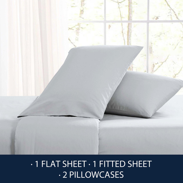 Refresh your bedding with the Nautica T200 Solid Sheet Set. Crafted from breathable cotton percale, these lightweight, 200 thread count sheets offer cool, lasting comfort. Available in classic solids and nautical prints, each set includes a fully elasticized fitted sheet for a secure fit on mattresses up to 12 in. deep. Machine washable for easy care.