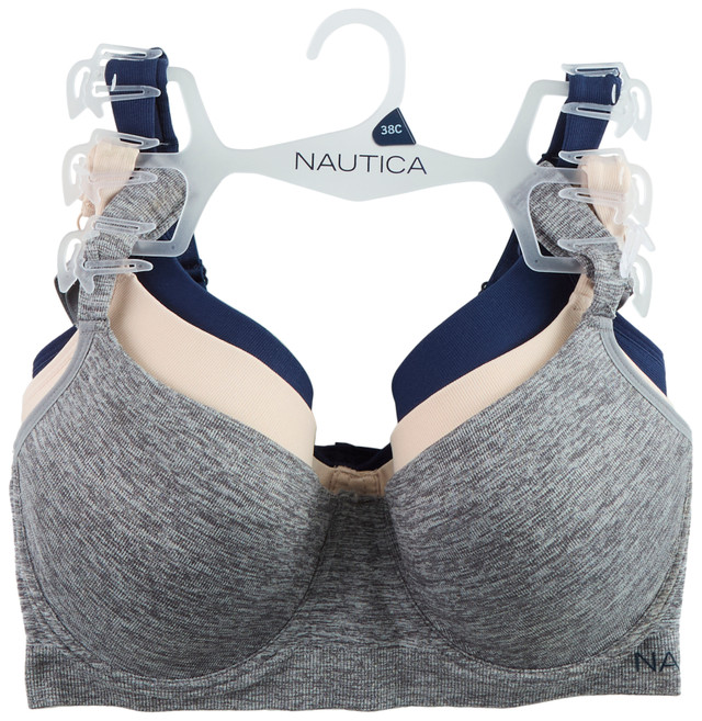 Experience everyday comfort with the Womens 3-Pack Seamless Molded Bras. Featuring adjustable straps, soft padded cups, and a smooth, seamless design, these bras provide a flattering fit in assorted color. Fabrication 60% nylon, 32% polyester, 8% spandex