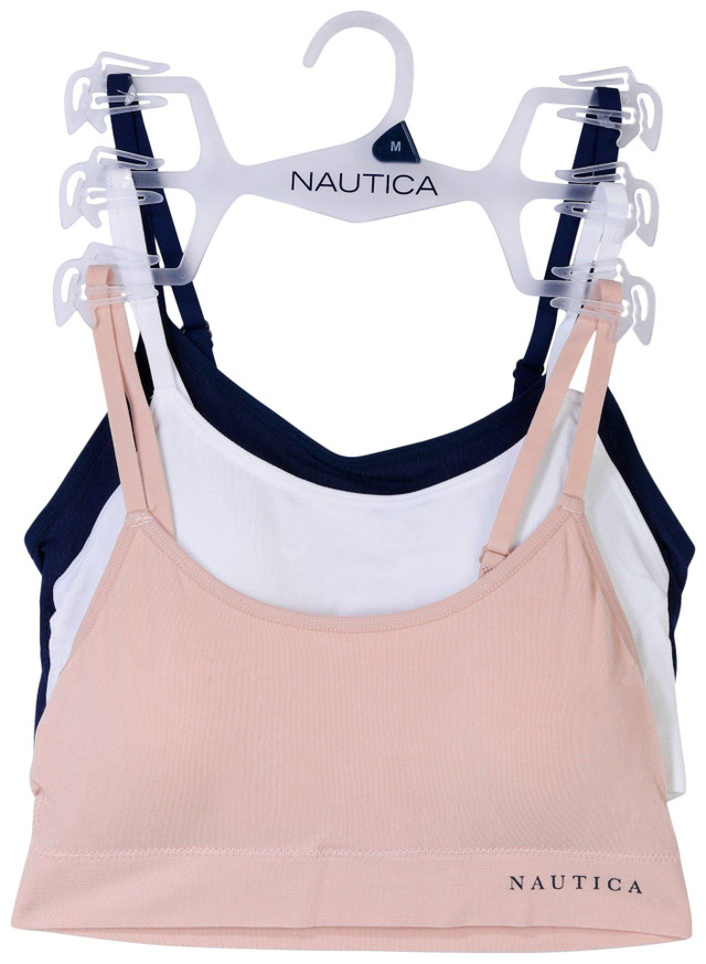 Fashion forward and ultra comfortable, this wire-free lounging bra features soft removable foam cups for a natural lift and all-day ease. Crafted from a premium modal, nylon, and spandex blend, its finished with a branded logo on the underband for a sleek, modern touch. Perfect for relaxing at home or layering under everyday looks. Fabrication is 65% modal, 25% nylon, 10% spandex.