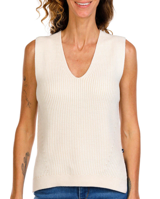 Stay cool and stylish in the Barcelona Sleeveless Sweater, crafted from soft loose knit cotton with eye catching striped details. Perfect for layering or wearing on its own for a relaxed, breezy look.
