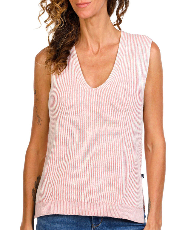 Nautica Womens Barcelona Sleeveless Pleat Striped Sweater