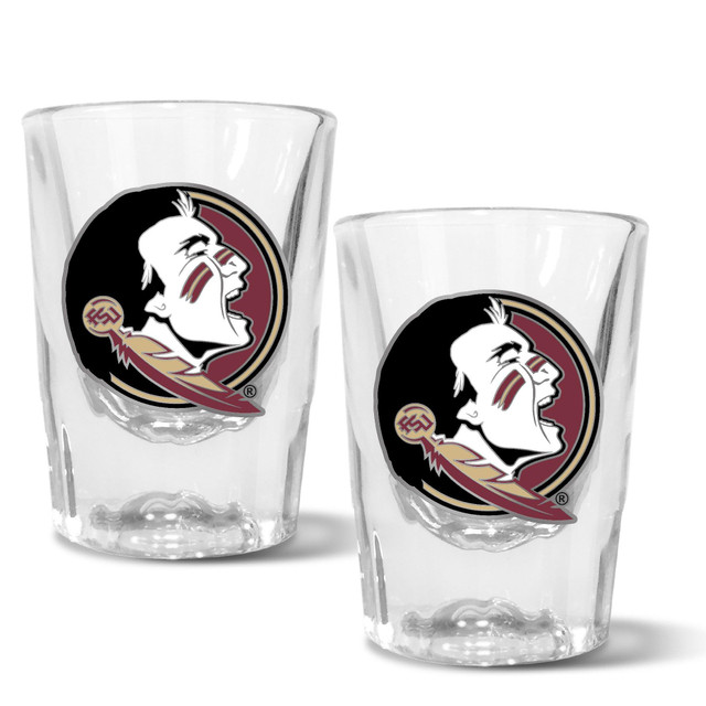 Show your team spirit tailgating with these NCAA Florida State Seminoles Set of 2 2 Oz. Prism Shot Glasses. The set includes two 2-oz shot glasses. In addition to the high-quality metal emblem, the Prism shot glass features an elegant cut at the base. Each measures 2.25'' x 2.25'' x 3.''