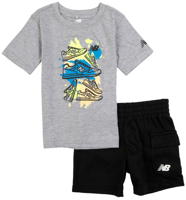 This Little Boys Active 2-Piece Shorts Set includes a logo screen print t-shirt and easy pull-on cargo shorts. Made from a soft 60% cotton, 40% polyester blend, it is designed for comfort and active play all day long.