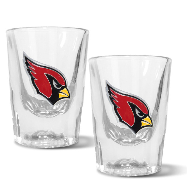 Show your team spirit tailgating with these NFL Arizona Cardinals Set of 2 2 Oz. Prism Shot Glasses. The set includes two 2-oz shot glasses. In addition to the high-quality metal emblem, the Prism shot glass features an elegant cut at the base. Each measures 2.25'' x 2.25'' x 3.''