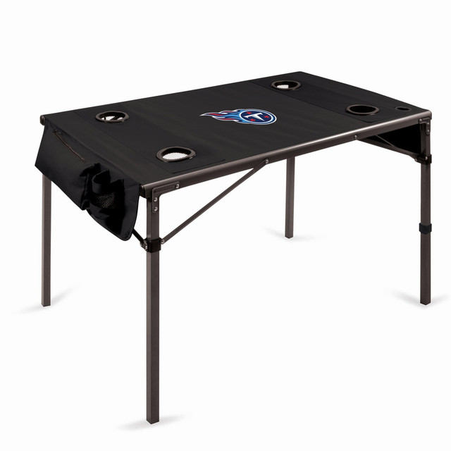 This Tennessee Titans Travel Portable Folding Table,is the ultimate compact folding table for camping, tailgating, beach days, picnics at the park and bbqs! It features high quality components including a sturdy polyester canvas skin that stretches over a durable, powder-coated steel frame. The frame folds inward to pack easily into a drawstring bag with a shoulder strap. Includes 4 drink holders, a zippered pouch, and beach umbrella hole for build-in shade.
