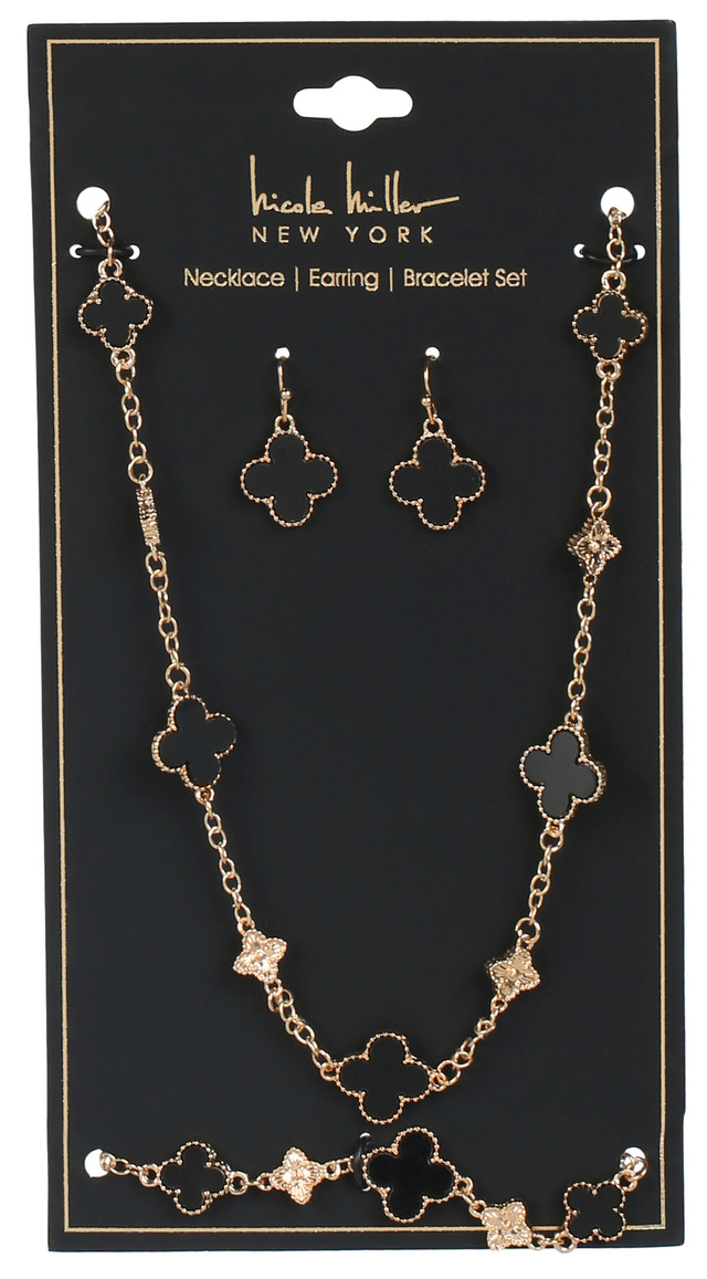 Nicole Miller 3 Pc Gold Clover Earrings & Necklace Set