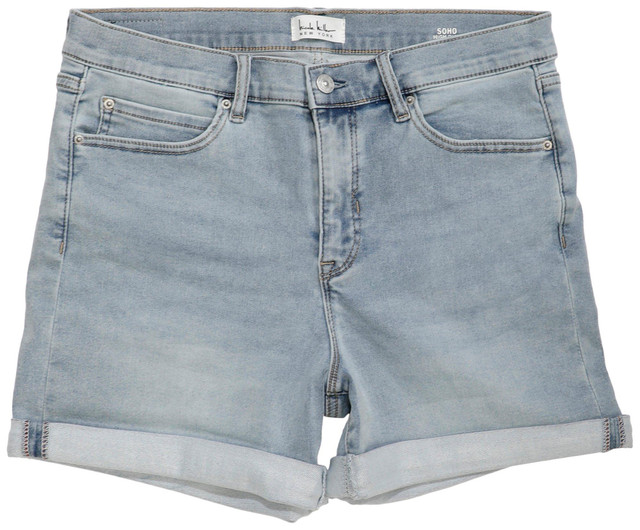 Add classic versatility to warm weather wardrobes with the Big Girls 5 in Denim Shorts. Featuring a basic five pocket design with a rolled hem and flexible fit, they offer comfort and timeless style for everyday wear. Ideal for pairing with tees or tanks. Inseam is 5 in. Fabrication is 76% cotton, 22% polyester, 2% spandex.