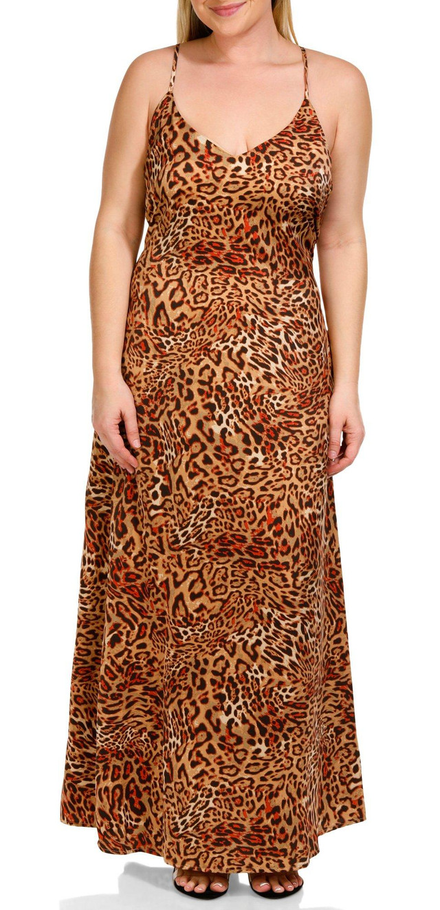 Introducing the Women's Sleeveless Palma Satin Maxi Dress, crafted from 100% polyester for a luxurious feel. This elegant dress features a chic leopard print, a flattering v-neckline, and delicate spaghetti straps. With its 50-inch length, it's perfect for making a statement at any event. Whether you're attending a special occasion or enjoying a night out, this dress ensures you look stunning and feel confident.