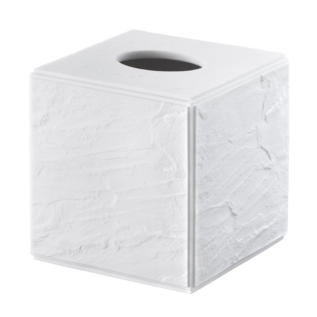 The Nicole Miller Zen Decorative Tissue Box Cover features a modern, white, textured design with raised panels on all sides and top. Made of durable sand resin that adds a bit of sparkle. The perfect addition for any bathroom, bedroom, playroom or office. Measures 5.80 in. x 5.80 in. x 5.80 in.