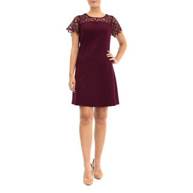 This Nina Leonard dress exudes elegance with lace cap sleeves and a beautifully embroidered novelty yoke. Its A-line silhouette and princess seams flatter the figure, offering a graceful, polished look. Perfect for special occasions, it blends timeless charm with intricate detail. Dress Hem Length 37.5 in.