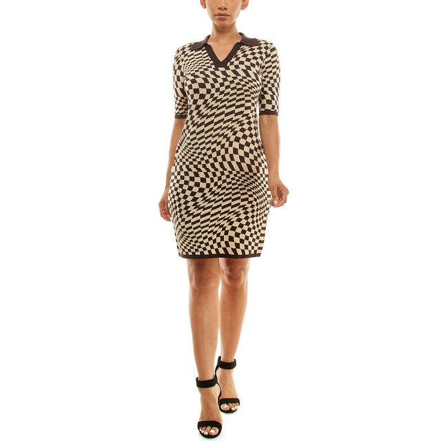Turn heads and make a bold statement with this Nina Leonard Optical Illusion Checkered Dress, a modern masterpiece that blends artful design with everyday elegance. The black and white checkered pattern creates a stunning visual effect that flatters your figure and adds a contemporary edge to your wardrobe. Perfect for work, dinner dates, or gallery openings, this dress is your go-to for standout style with minimal effort. Dress hem length 37.5 in.