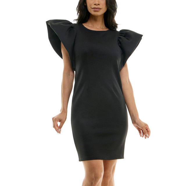 Nina Leonard Womens Short Scuba Ruffle Sleeve Dress