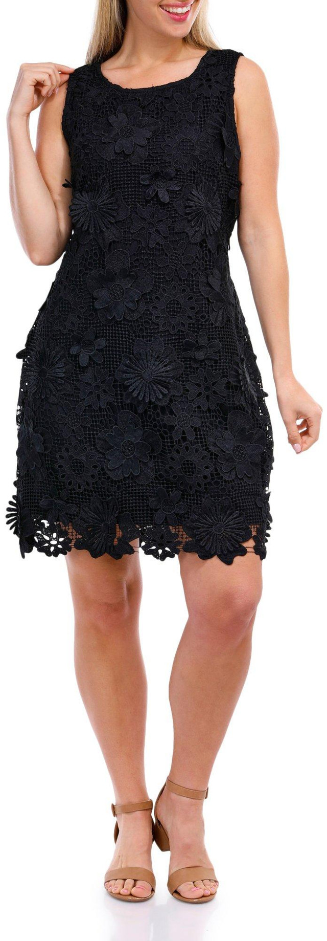 Introducing the Women's Sleeveless 3D Floral Lace Dress, made from 100% polyester for a comfortable and elegant fit. This dress features a crew neckline, a stylish mace floral design, and a convenient back zip entry. With a length of 37 inches, it's perfect for work or springtime events, adding a touch of sophistication to your wardrobe.