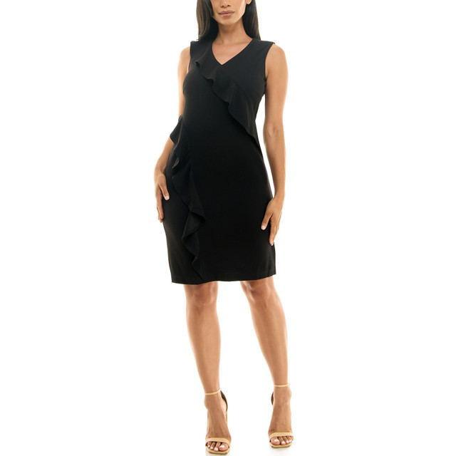 Nina Leonard Womens Sleeveless Sheath Ruffle Dress