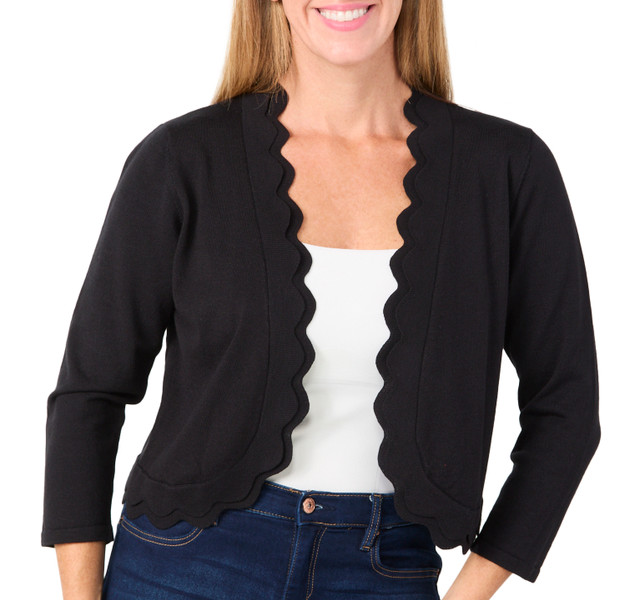 Nina Leonard Womens Solid Scalloped 3/4 Sleeve Shrug