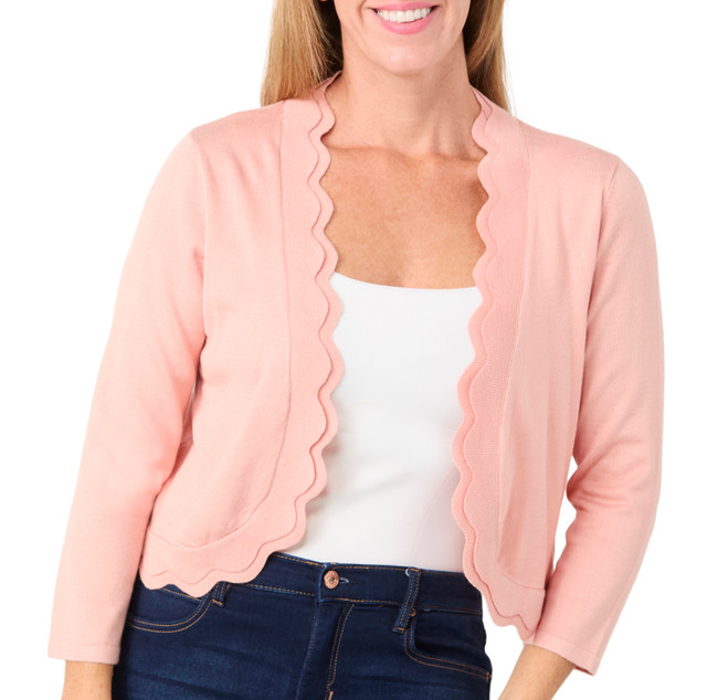 Nina Leonard Womens Solid Scalloped 3/4 Sleeve Shrug