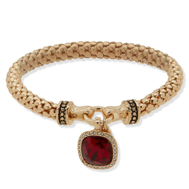 A stylish design paired with a striking red stone charm. Perfect for adding a sophisticated touch to everyday wear or special occasions. Boxed and ready for gifting!
