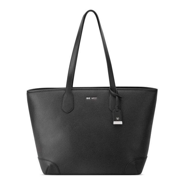 The Nine West Kylene tote blends everyday functionality with polished style. Crafted from smooth or pebbled faux leather, this structured tote features dual top handles and a removable crossbody strap for versatile carrying. Measures 16 in x 6 in x 11 in
