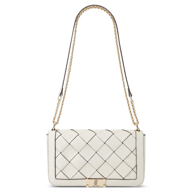 The Mylah flap convertible chain crossbody is featured in a great silhouette with woven and hardware details. Perfect for every day, a night out or an event, this beautiful bag is made with durable material and gold hardware. Convert from shoulder to crossbody for versatile styling. Measures 10 in x 2 in x 6 in.