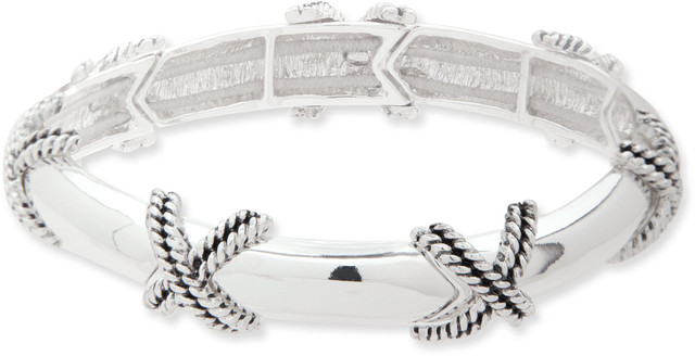 Sleek and modern, this silver stretch bracelet features a bold textured X design that adds dimension and shine. Its flexible fit ensures all-day comfort, making it a standout piece for both casual and dressy looks.