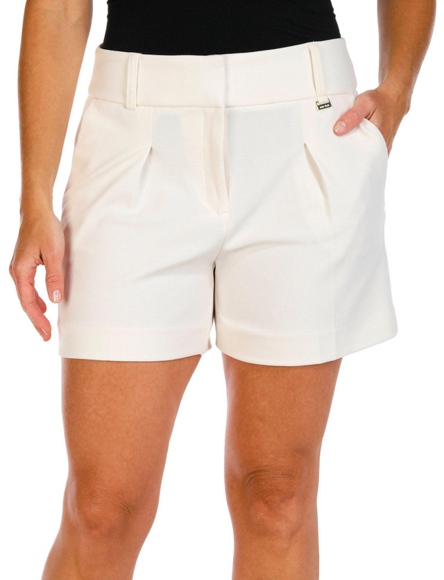 Step into effortless style with these Women's 5 in Fly Front High Rise Shorts. Featuring a solid color, button-fly closure, side seam pockets, and a flattering high-rise waist, they offer a polished look with everyday comfort and a 5-inch inseam for versatile wear. Fabrication 97% polyester, 3% elastane