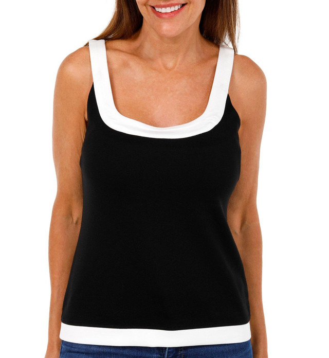 This women's sleeveless top features a round neckline and a piped design for a clean, modern look. The banded hem adds structure, making it a flattering choice for both casual and polished outfits. Fabrication 67% viscose, 29% nylon, 4% spandex