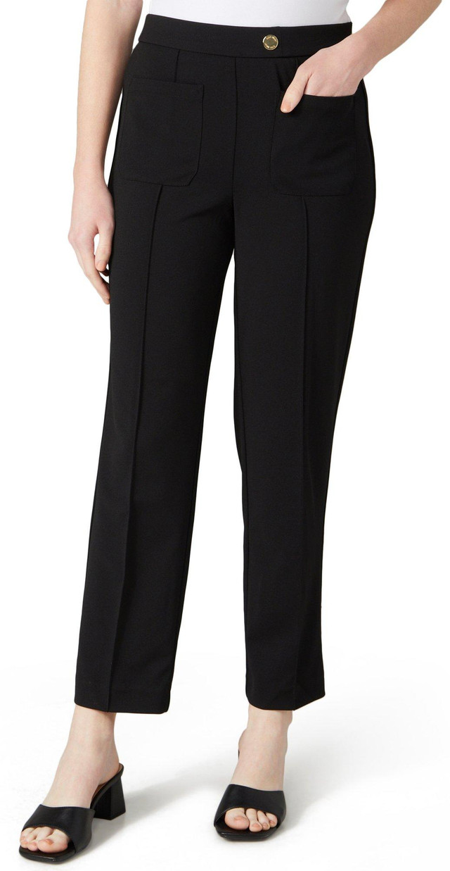 Step into effortless style with the Straight Leg Pants, designed for both comfort and versatility. Featuring double front pockets, these pants offer practical storage for your essentials. The double faux back pockets add a sleek and polished touch, enhancing the overall look. Inseam measures approximately 28 in. Fabrication is 97% polyester, 3% elastane.
