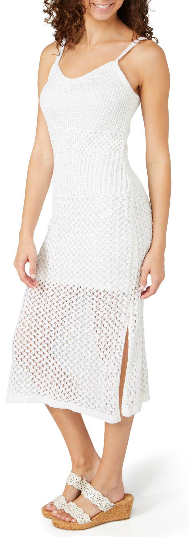 Introducing the Juniors Textured Pointelle Midi Dress, crafted from a blend of acrylic and polyester for a soft and comfortable feel. This stylish dress features a solid color and a flattering v-neckline. The sleeveless design adds a touch of elegance, while the 38-inch length offers a sophisticated midi silhouette. Perfect for casual outings or dressing up, this versatile dress is a must-have addition to your wardrobe.