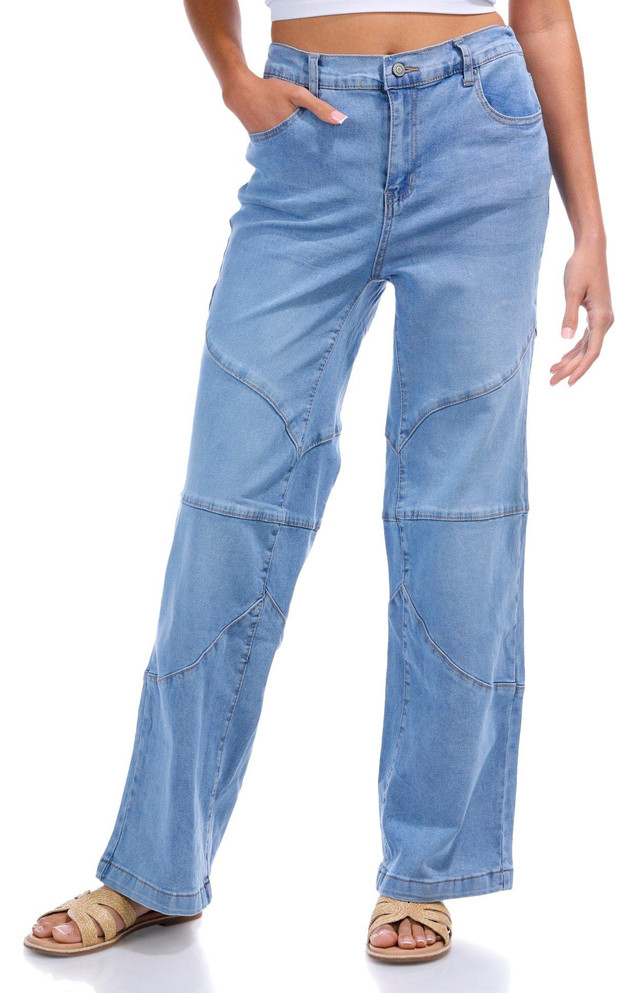Elevate your style with our Juniors Wide Leg Seam Detail Jeans. Crafted from a blend of 98% cotton and 2% spandex, these jeans offer a comfortable and flexible fit with a 30in inseam. The elastic waistband and button zip fly closure ensure ease of wear, while the classic 5-pocket cut adds functionality. The wide leg fit and western vibe provides a trendy silhouette. Perfect for making a fashion statement, these jeans are a must-have for any wardrobe.