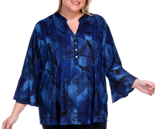 The 3/4 Sleeve Top is a perfect blend of elegance and comfort. Crafted from jacquard knit fabric, this top offers a unique texture and visual appeal. The buttoned neckline adds a classic touch, while the bell sleeves provide a stylish and feminine flair. Ideal for both casual and semi-formal occasions, this versatile top ensures you look chic and feel comfortable. Fabrication is 95% polyester, 5% spandex.