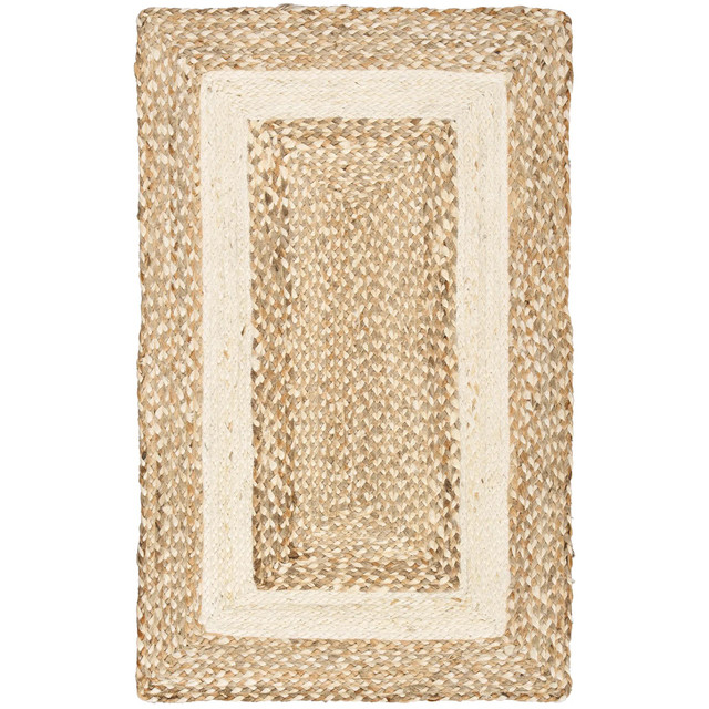This hand braided jute accent rug is made from natural fiber and features a non-skid backing. It adds rustic charm and earthy warmth to any space, creating a cozy, inviting atmosphere. Fabrication is 100% jute.